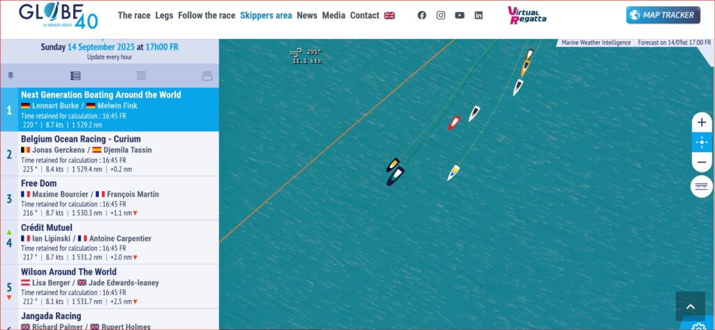 Do. 06:00 – Next Generation liegt inzwischen 27,5 sm hinter Ian Lipinski zurück, der in der Mini-Klasse viele Erfahrungen sammeln konnte, während Lennart und Melwin m.E. zu früh in die Class 40 gewechselt sind.
