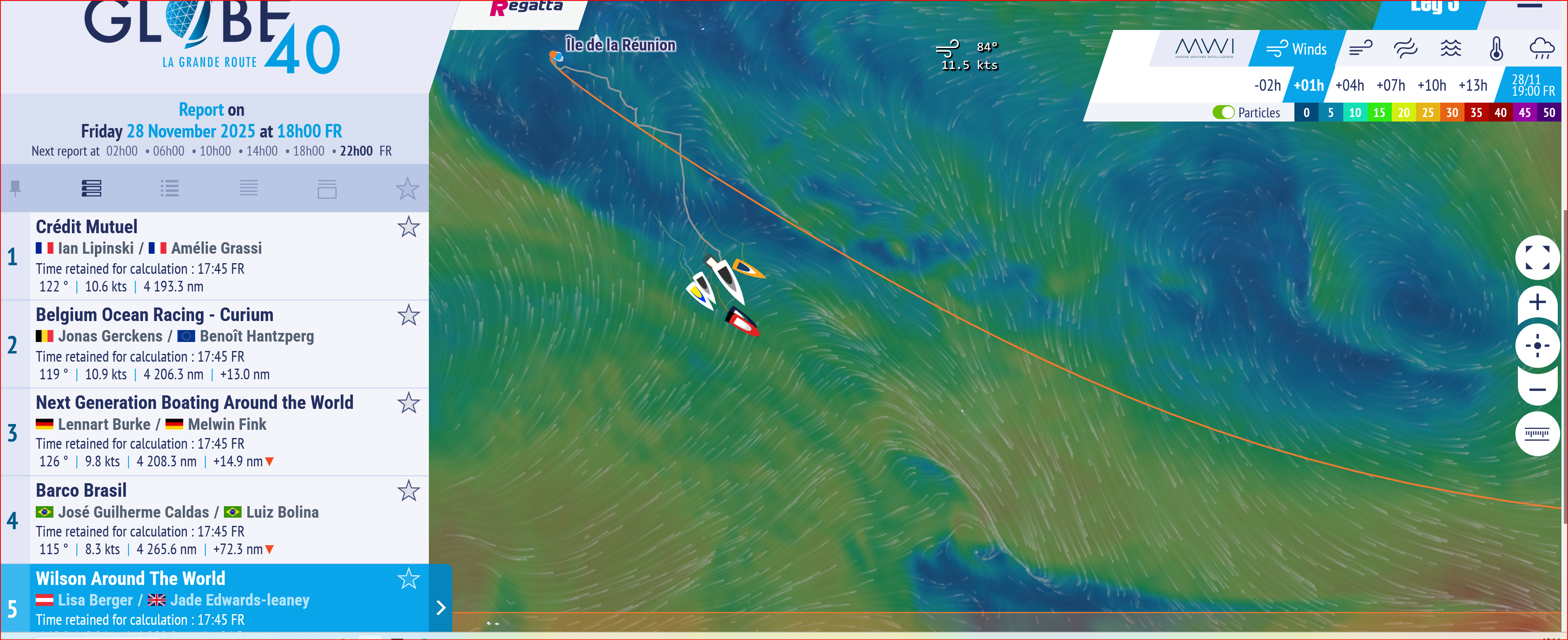 Meine Annahme, dass Lisa Berger die Brasilianer überholen könnte, hat sich leider nicht bestätigt. Lisa hat zwar alles richtig gemacht und hätte aufgrund des südlicheren Kurses Vorteile haben müssen, aber ihr Schiff spielte leider nicht mit.