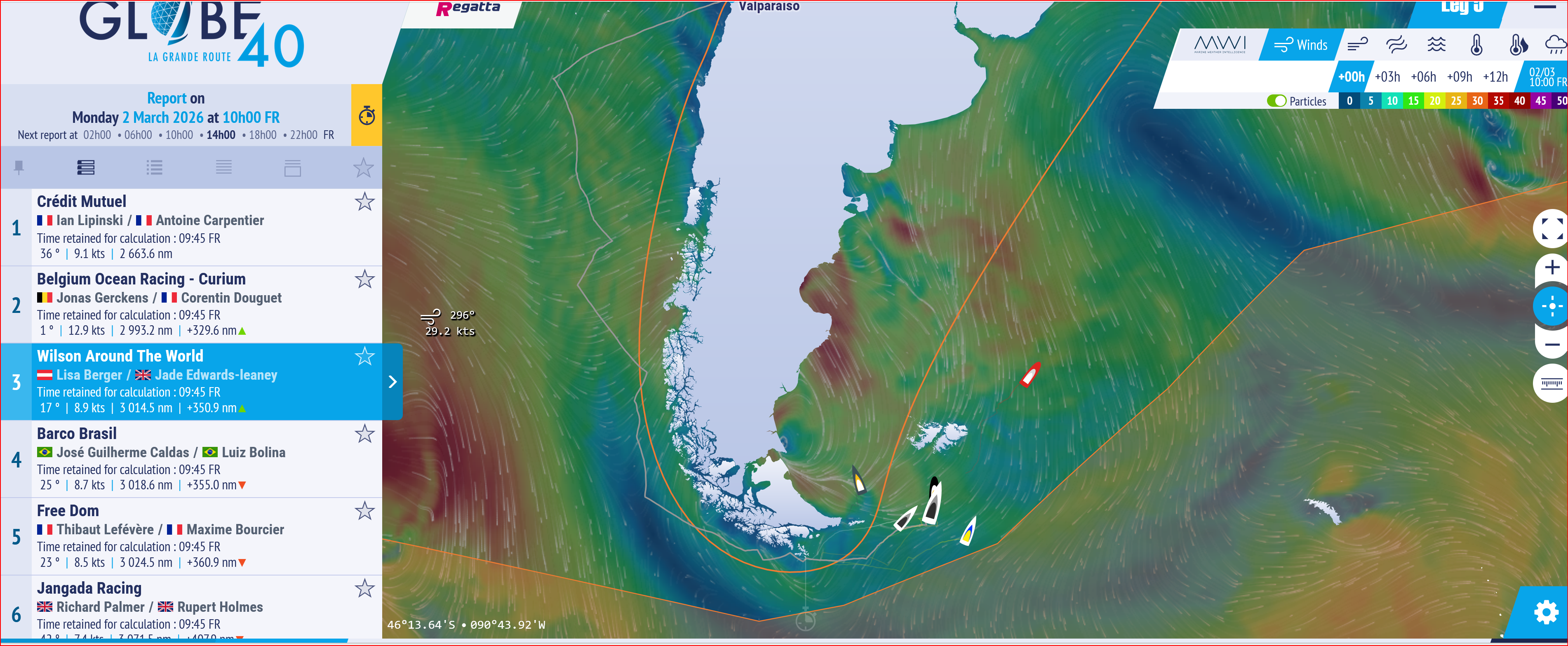 Nach der Kap-Hoorn-Passage, d.h. in einem Seegebiet in dem Boris Herrmann während der Vendée Globe 2020/21, vom Wetterglück begünstigt einige Plätze gutmachen konnte, rückt nun auch Lisa vom Attersee an die Spitze der Spitzbugboote. Mit Interesse wird zu beobachten sein, wie sich Wilson im Vergleich zu den Belgiern mit ihrem Scowbug schlägt. Die Belgier hatten relativ kurz nach dem Start einen Reparaturstop (?) in Valdivia einlegen müssen. Es wird sich jetzt also zeigen, ob die Scows auch am Wind schneller sind.