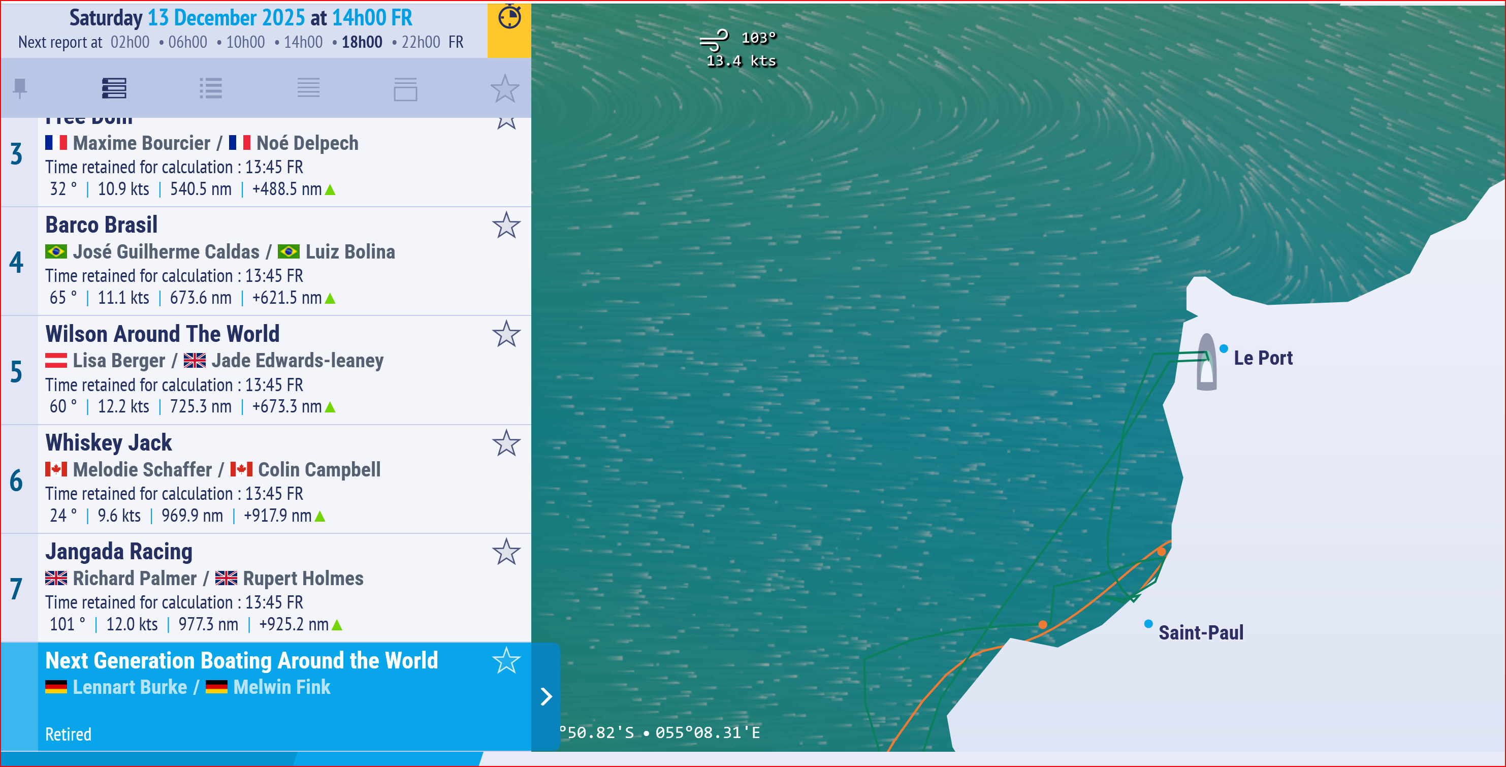 Vor Gericht und auf hoher See ist man in Gottes Hand. Ich will mich daher mit meinen Einschätzungen nicht zu weit aus dem Fenster lehnen, aber wie soll das funktionieren, in 4 Wochen zurück nach Reunion, dort zu reparieren und dann 5.100 sm nach Sydney zu segeln. Aktuell haben die schnellsten Boote in 9 Tagen nur ca. 200o sm geschafft.